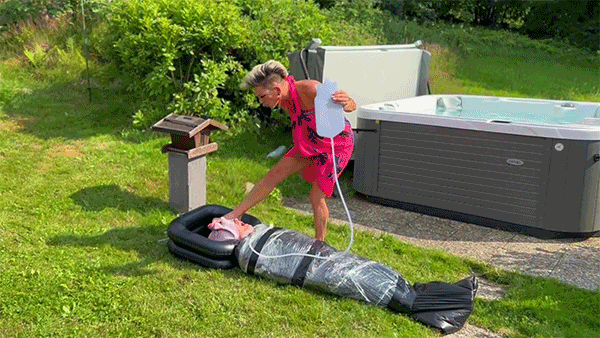 Die Herrin vergnügt sich derweil im Pool, so wie sie es sich verdient hast.